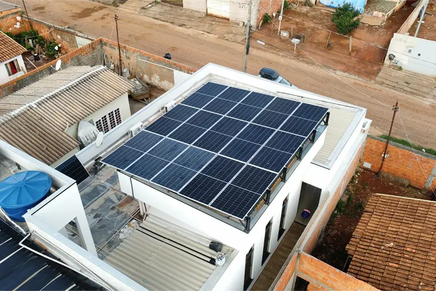 O sistema on-grid integra seus painéis fotovoltaicos à rede elétrica. A energia gerada atende o consumo do imóvel e o excedente pode ser entregue à concessionária para gerar créditos que ajudam a reduzir o valor mensal da conta. Trata-se de uma solução limpa e eficiente para residências, comércios e indústrias com acesso estável à rede pública, aproveitando a compensação de energia de forma simples e segura.