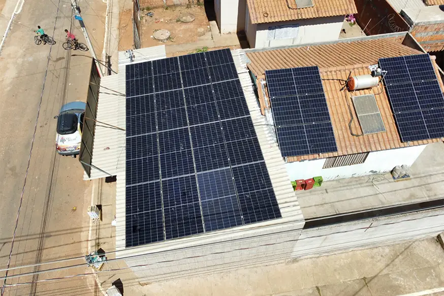 Os painéis solares captam a luz do sol e, com o inversor solar, transformam essa energia em eletricidade para uso no seu imóvel. O excedente é convertido em créditos na concessionária, reduzindo o valor da sua conta.